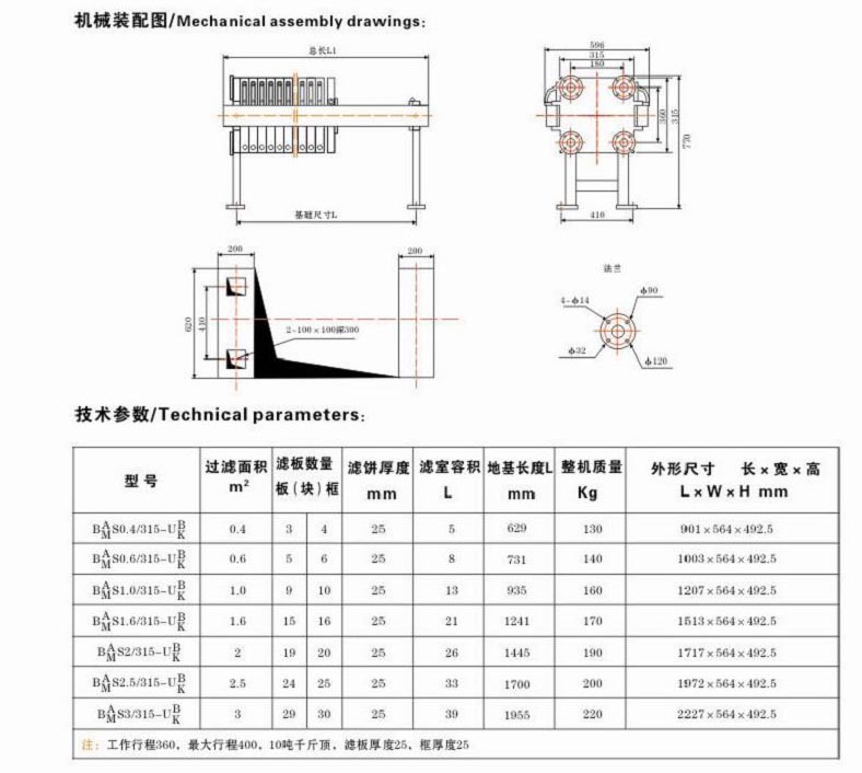 板框BS0.4-3/315-U压滤机